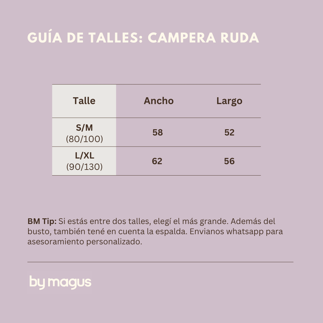 Talle TIP: Disponible en talle desde S/M y L/XL. Te recomendamos elegir el talle que normalmente usas en abrigos, es para usar sueltita. * La modelo usa talle S/M y sus medidas son 90cm busto - 73cm cintura - 103cm cadera